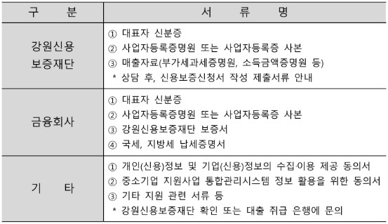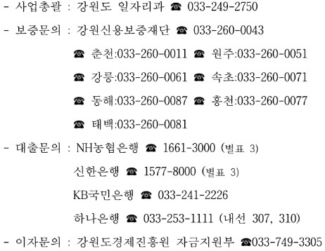- 방식 : 강원신용보증재단 보증서 / 무이자, 무담보, 무보증