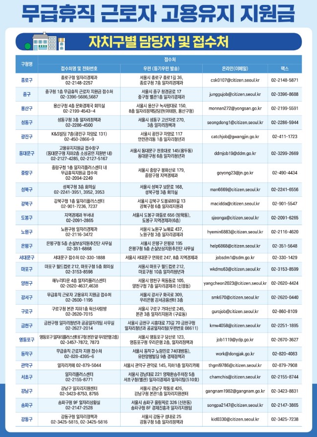 - 접수 신청 : 사업주 및 무급 휴직 근로자