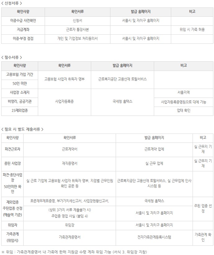 - 서울 소재 소상공인 및 50인 미만 기업체 근로자