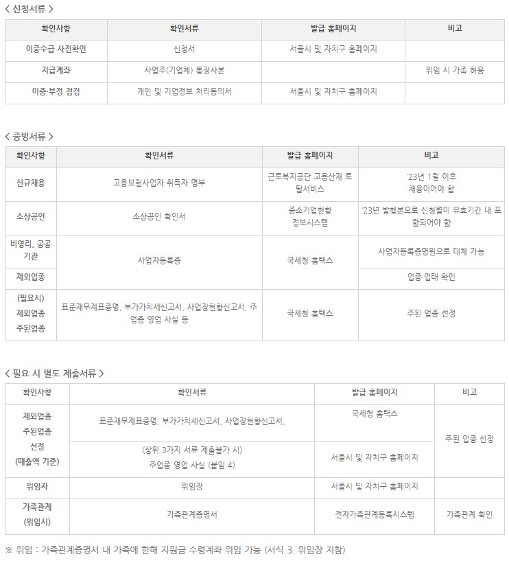 소상공인 범위 미포함), 지원금 산정기간 동안 공공기관 유사 일자리 정책 사업