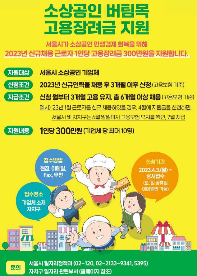 | 서울시 무급 휴직 근로자 고용 유지 지원금 지원 (0) | 2023.04.12 |