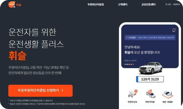 ☞ 통합 주. 정차 단속 알림 서비스 신청 하기 "휘슬"