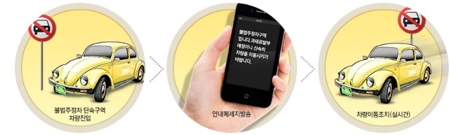 운전자에게 불법 주. 정차에 대한 사전 경고 안내 메시지를 휴대폰으로 발송하여