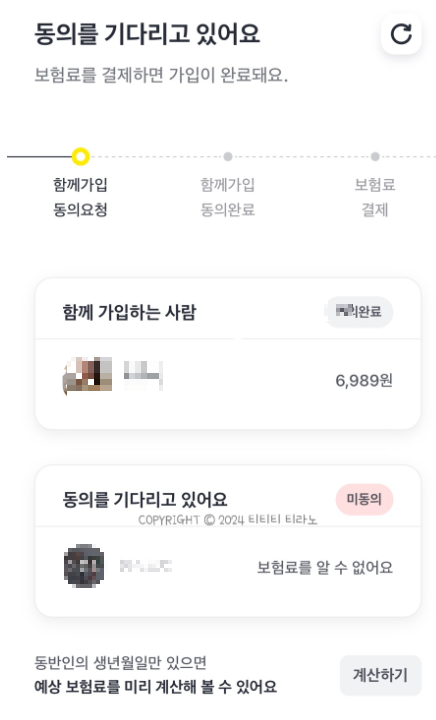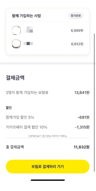 이후 보험료 결제 및 가입 완료가 진행되는데요 다음 진행 절차를 확인하세요.