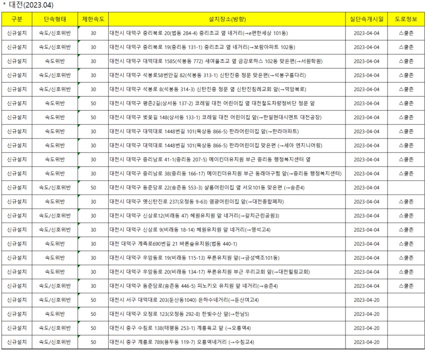 ▣ 2023년 4월 대전 신규 과속 단속 카메라 설치 장소